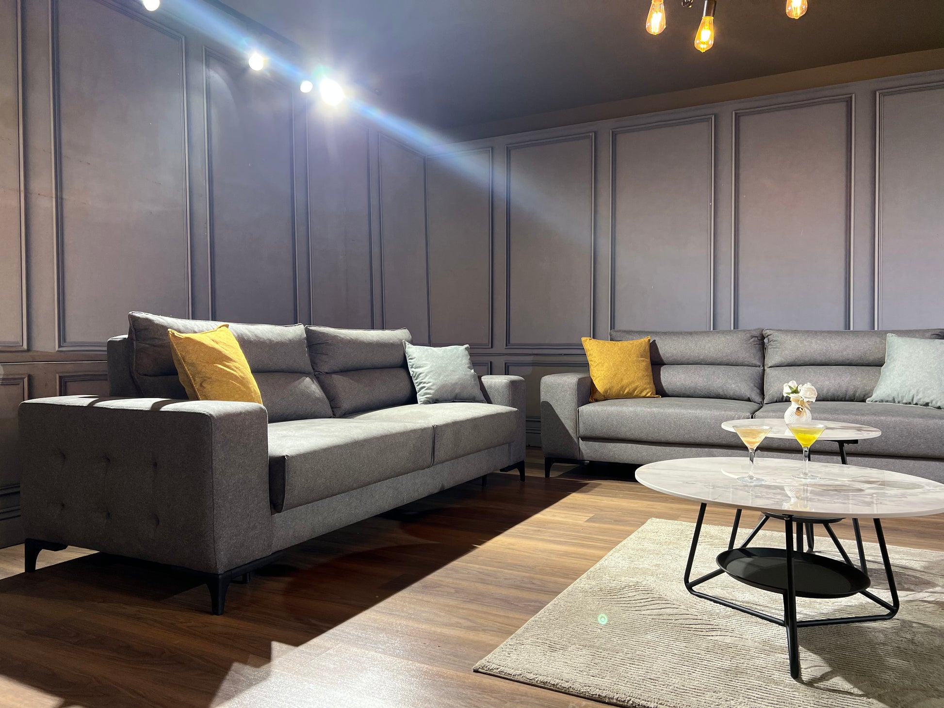 Elegancë dhe funksionalitet i thjeshtë në një - divani 3-vendësh Alfa. Dizajni i përjetshëm në pëlhurë kadife gri Bergo dhe konstruksioni solid prej druri i japin këtij divani bukurinë unike dhe shkathtësinë praktike.