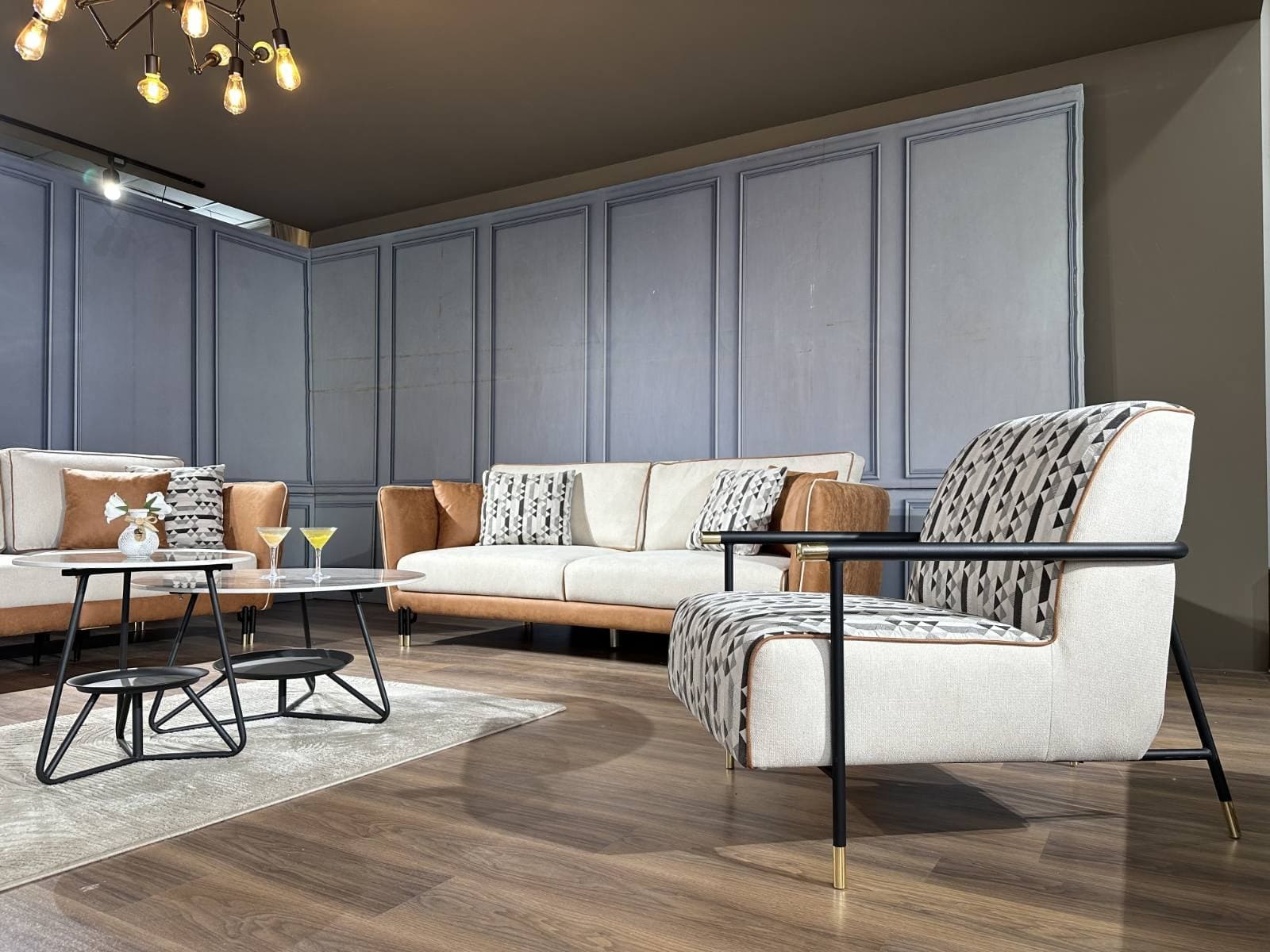 Përjetoni elegancë të përjetshme me divanin tonë Lazzoni. Kombinimi harmonik i ngjyrës kafe dhe të bardhë i jep këtij divani një karizëm të veçantë, ndërsa pëlhura prej kadife Bergo/Florida dhe sedilja Poster 32 Atmospheres garantojnë nivelin më të lartë të komoditetit dhe cilësisë së ndenjëseve. Këmbët elegante të zeza prej druri plotësojnë modelin në mënyrë të përsosur. Kjo divan 3 vendesh është kuintesenca e elegancës dhe individualitetit dhe do ta shndërrojë dhomën tuaj të jetesës në një vepër arti. Bëni shtëpinë tuaj një vitrinë për stilin e përjetshëm.